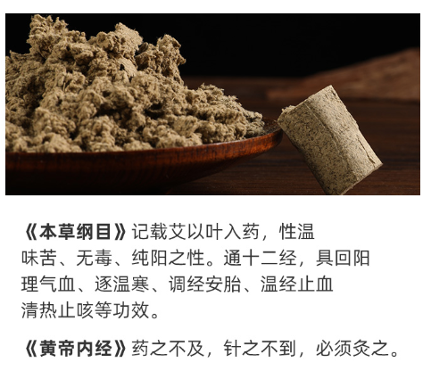 艾絨易點燃,火力溫和適中,潤能通經(jīng),溫而不燥。