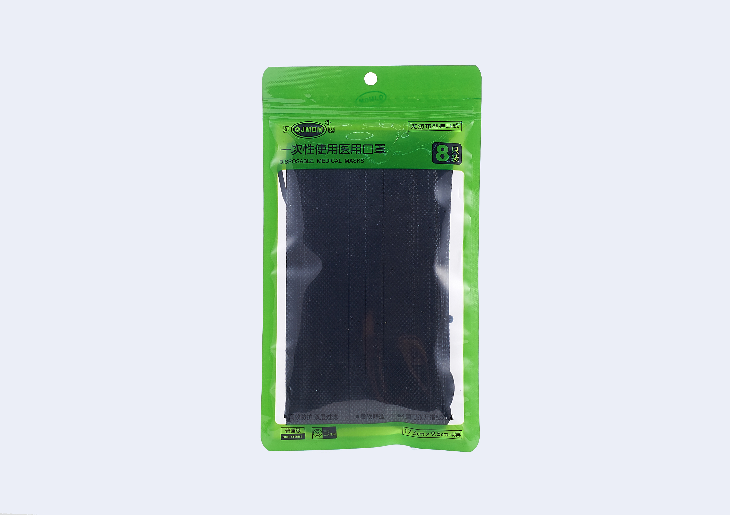 1、 由無紡布+熔噴布+黑色活性炭吸收層+無紡布四層過濾精制而成。低致敏,柔軟舒適,透氣性強。