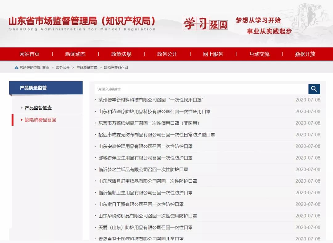 一省接連發(fā)布公告,超29萬(wàn)個(gè)口罩存在缺陷,全部召回。其中,有81400個(gè)為兒童口罩。近日,山東省市場(chǎng)局接連發(fā)布26條公告,數(shù)十家企業(yè)生產(chǎn)的口罩存在缺陷,要召回,涉及一次...